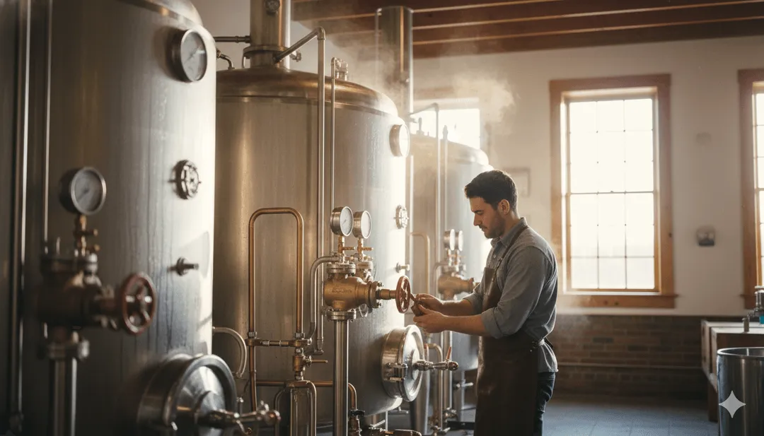 Le liquide fermenté est distillé avec précision pour extraire l’alcool pur et concentrer les arômes distinctifs de l’érable. Cette distillation artisanale est au cœur du savoir-faire des distillateurs membres de l’UDSÉ.